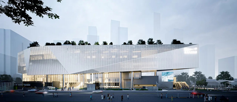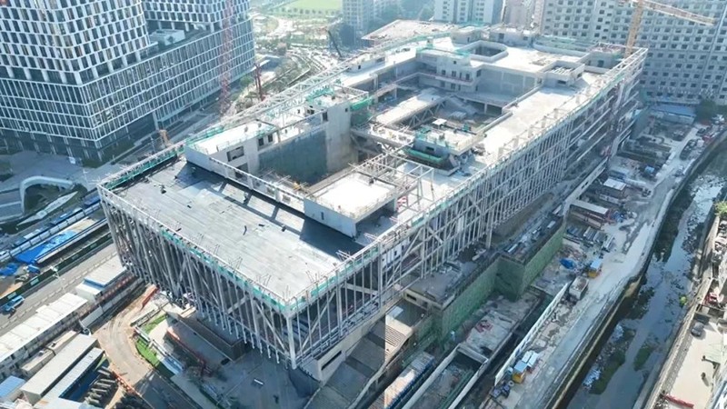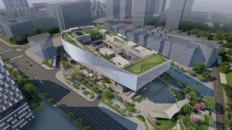 該項目位于深圳龍華區,這座占地面積達31367平方米、建筑面積達83290平方米的文化地標,地上七層,地下兩層,建筑高度39.9米。整座建筑采用框架剪力墻結構體系,巧妙結合了8核心筒、巨型桁架、鋼管混凝土結構和型鋼混凝土結構,總用鋼量約1.12萬噸。